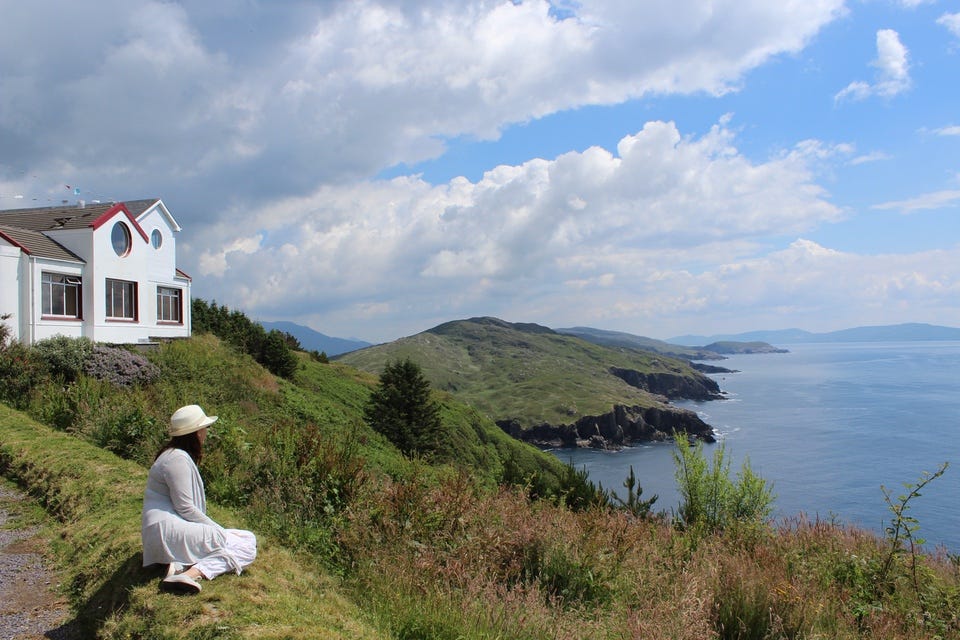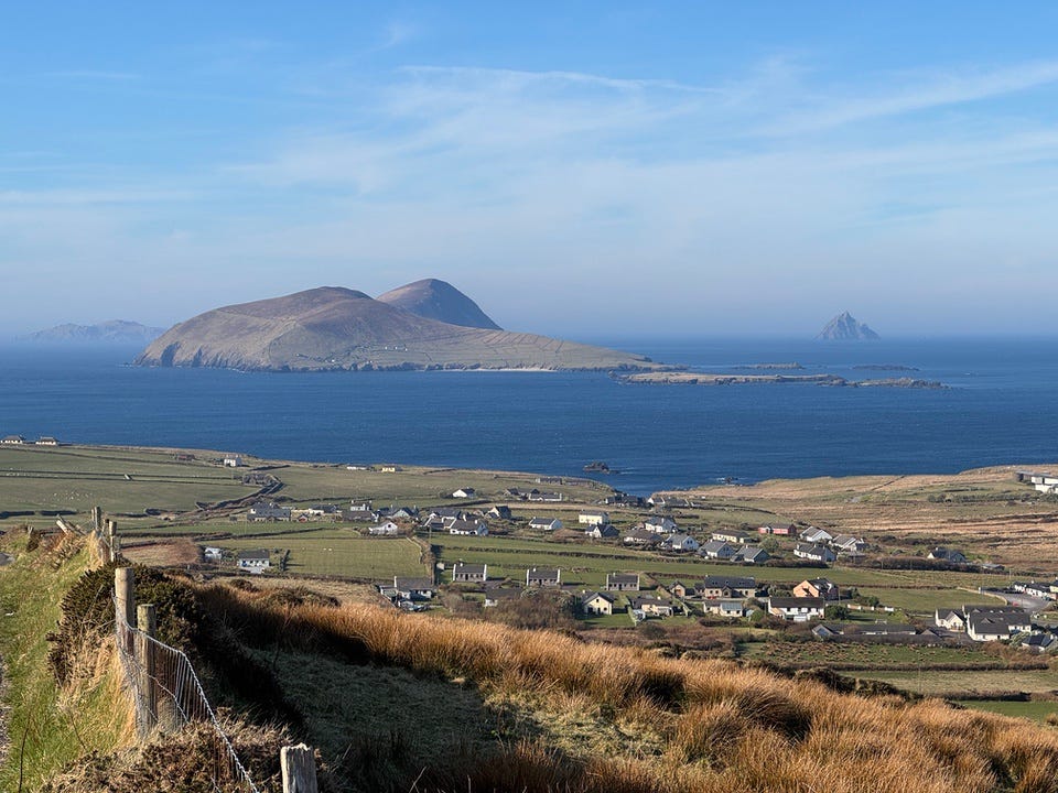 A mist is just starting to drift in around me as I lifted finish writing, hiding the green fields that stretch toward the coast and the islands beyond. However, a little weather won’t stop the thousands of visitors out there who are on their own journeys along the Wild Atlantic Way. Most are drawn here for the sightseeing, but many others returning to the places their ancestors left for a better life many generations ago. I guess the scenery didn't count for much back then.